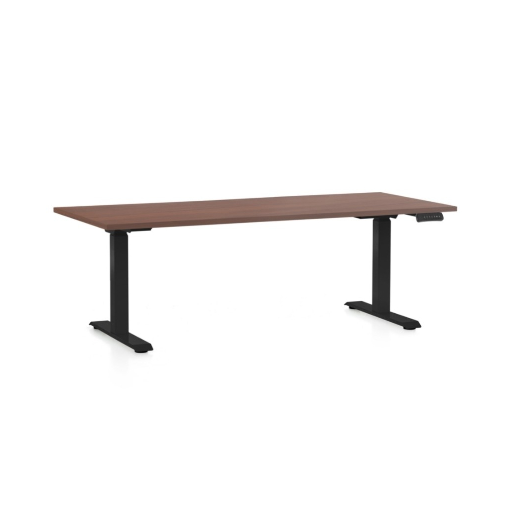 Výškově nastavitelný stůl OfficeTech C, 180 x 80 cm, černá podnož, ořech