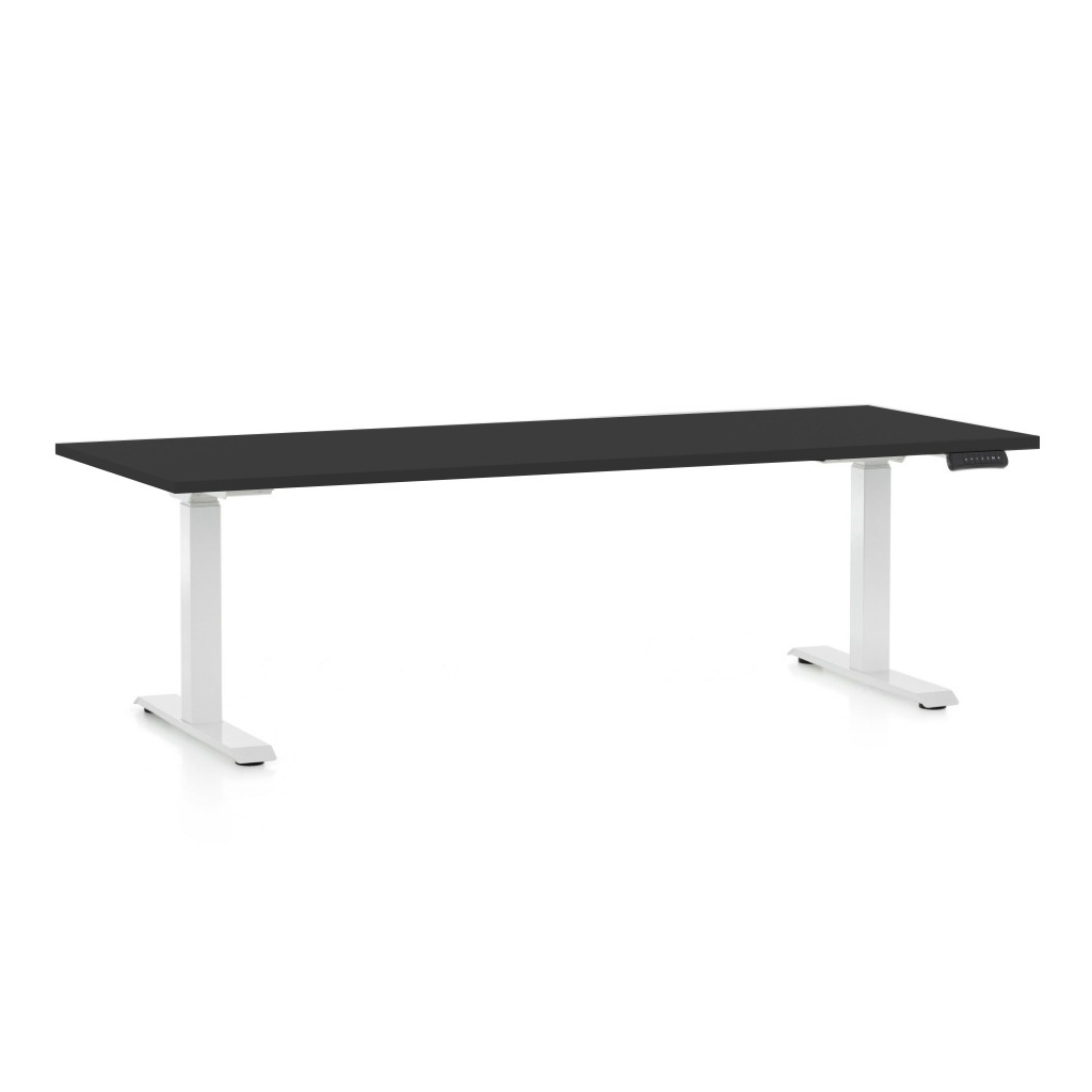 Desky těchto stolů jsou z laminované dřevotřísky s ochrannou ABS hranou. Kovové podnože mají variabilní délku a šířku bezmála 70 cm, což jim zaručí skvělou stabilitu. Napájení řeší kabel do klasické 230V zásuvky.