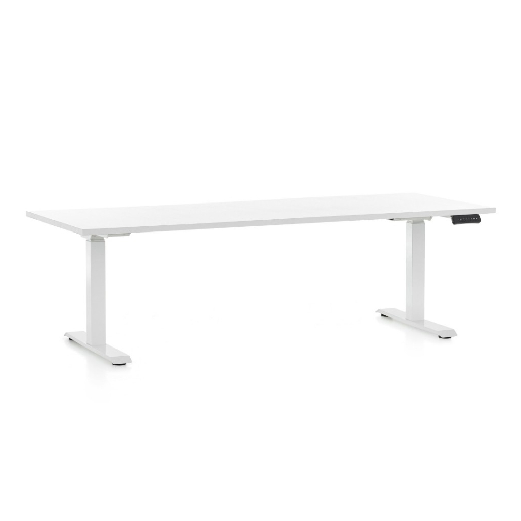Desky těchto stolů jsou z laminované dřevotřísky s ochrannou ABS hranou. Kovové podnože mají variabilní délku a šířku bezmála 70 cm, což jim zaručí skvělou stabilitu. Napájení řeší kabel do klasické 230V zásuvky.