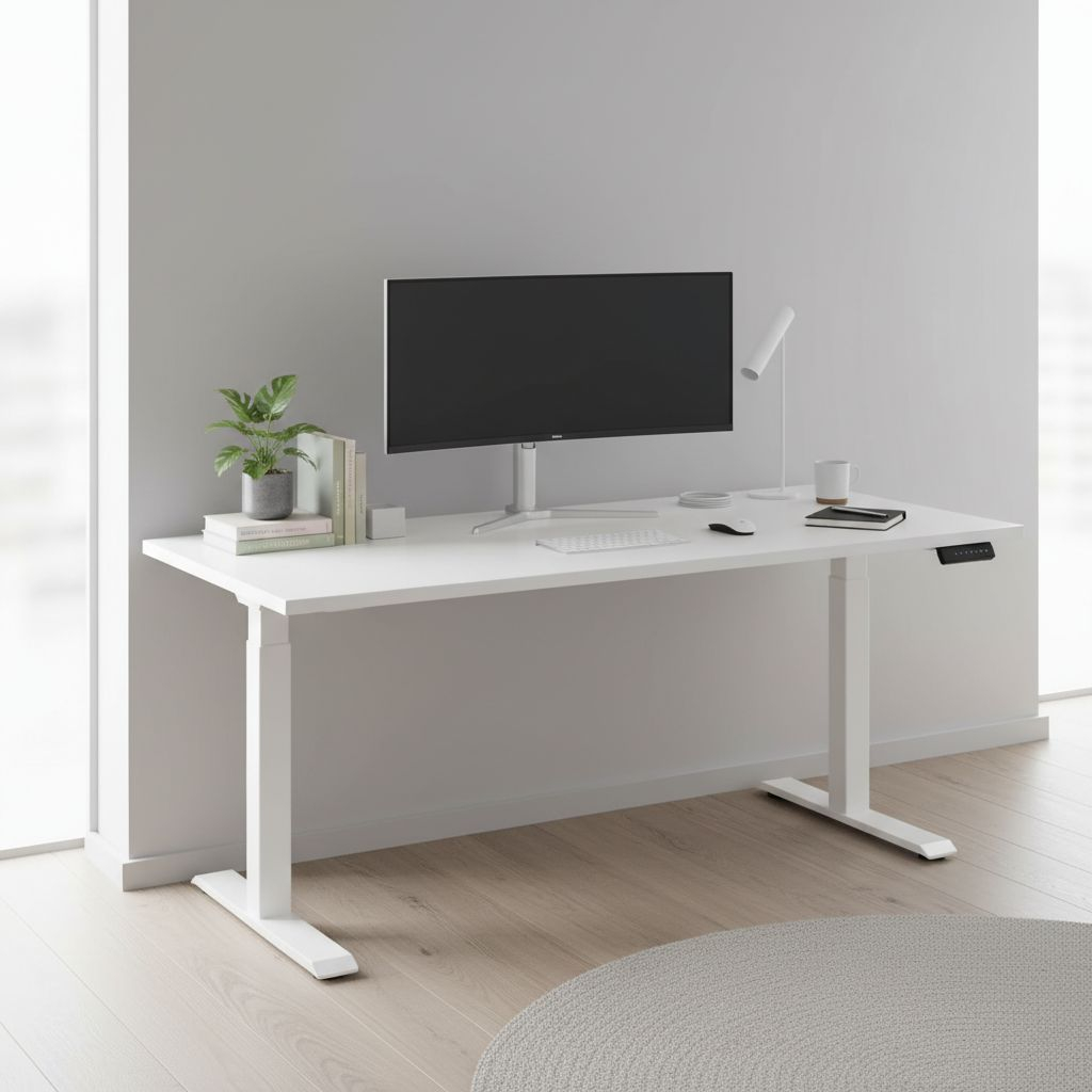Když stůl při sjíždění do nižší polohy narazí na odpor (např. područku zasunuté židle), zastaví se. Nemusíte se tak bát poškození nábytku nebo spadnutí věcí ze stolu.