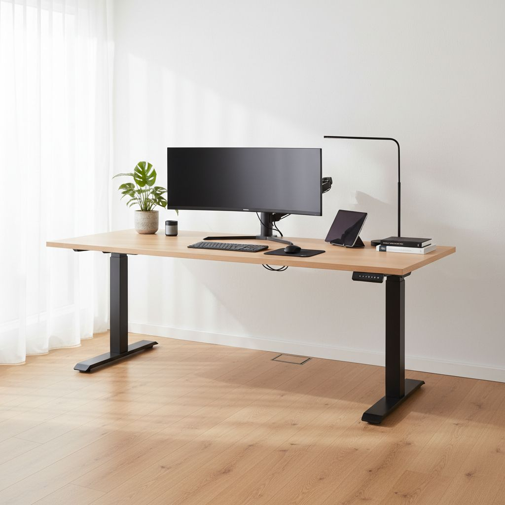 Když stůl při sjíždění do nižší polohy narazí na odpor (např. područku zasunuté židle), zastaví se. Nemusíte se tak bát poškození nábytku nebo spadnutí věcí ze stolu.