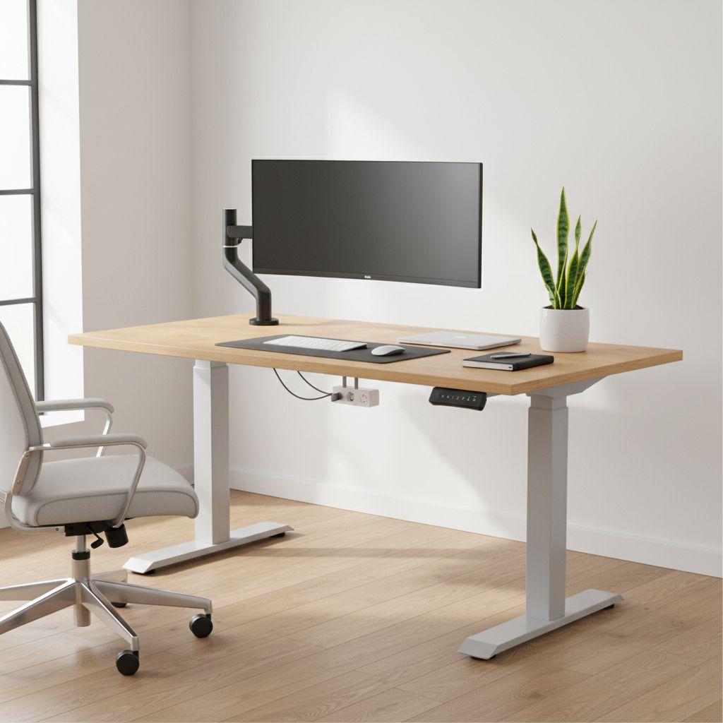Když stůl při sjíždění do nižší polohy narazí na odpor (např. područku zasunuté židle), zastaví se. Nemusíte se tak bát poškození nábytku nebo spadnutí věcí ze stolu.