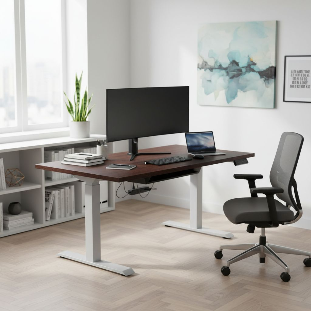 Když stůl při sjíždění do nižší polohy narazí na odpor (např. područku zasunuté židle), zastaví se. Nemusíte se tak bát poškození nábytku nebo spadnutí věcí ze stolu.