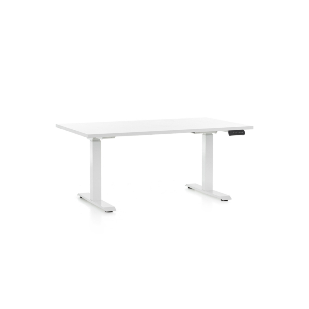 Desky těchto stolů jsou z laminované dřevotřísky s ochrannou ABS hranou. Kovové podnože mají variabilní délku a šířku bezmála 70 cm, což jim zaručí skvělou stabilitu. Napájení řeší kabel do klasické 230V zásuvky.