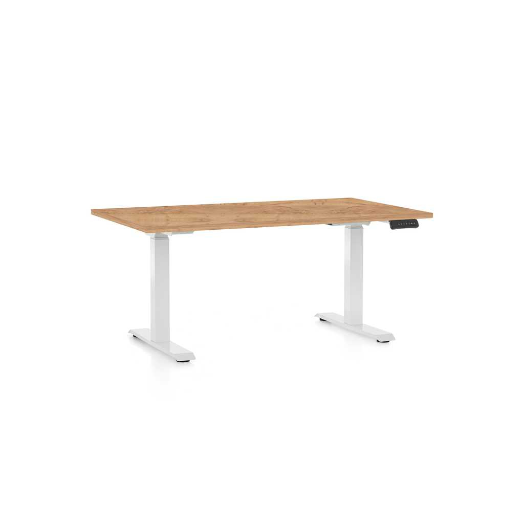 Desky těchto stolů jsou z laminované dřevotřísky s ochrannou ABS hranou. Kovové podnože mají variabilní délku a šířku bezmála 70 cm, což jim zaručí skvělou stabilitu. Napájení řeší kabel do klasické 230V zásuvky.