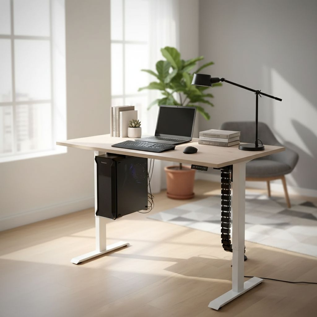 Když stůl při sjíždění do nižší polohy narazí na odpor (např. područku zasunuté židle), zastaví se. Nemusíte se tak bát poškození nábytku nebo spadnutí věcí ze stolu.