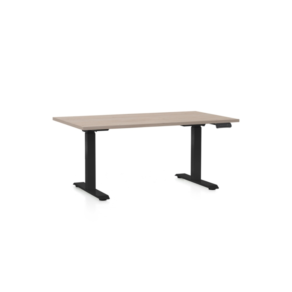Desky těchto stolů jsou z laminované dřevotřísky s ochrannou ABS hranou. Kovové podnože mají variabilní délku a šířku bezmála 70 cm, což jim zaručí skvělou stabilitu. Napájení řeší kabel do klasické 230V zásuvky.