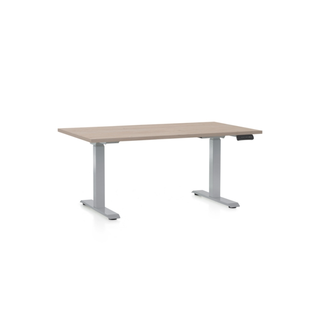 Desky těchto stolů jsou z laminované dřevotřísky s ochrannou ABS hranou. Kovové podnože mají variabilní délku a šířku bezmála 70 cm, což jim zaručí skvělou stabilitu. Napájení řeší kabel do klasické 230V zásuvky.