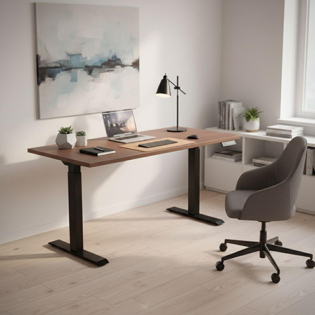 Desky těchto stolů jsou z laminované dřevotřísky s ochrannou ABS hranou. Kovové podnože mají variabilní délku a šířku bezmála 70 cm, což jim zaručí skvělou stabilitu. Napájení řeší kabel do klasické 230V zásuvky.