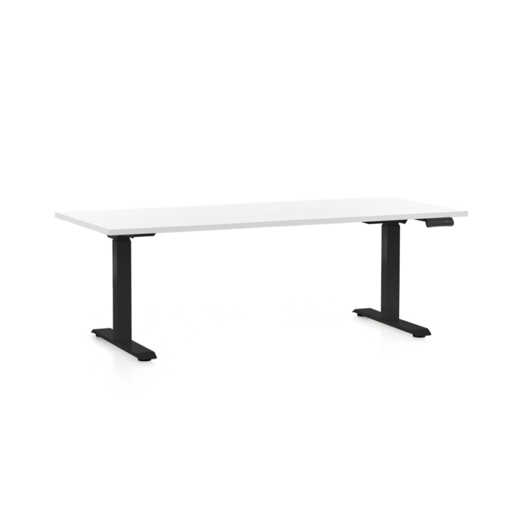 Desky těchto stolů jsou z laminované dřevotřísky s ochrannou ABS hranou. Kovové podnože mají variabilní délku a šířku bezmála 70 cm, což jim zaručí skvělou stabilitu. Napájení řeší kabel do klasické 230V zásuvky.