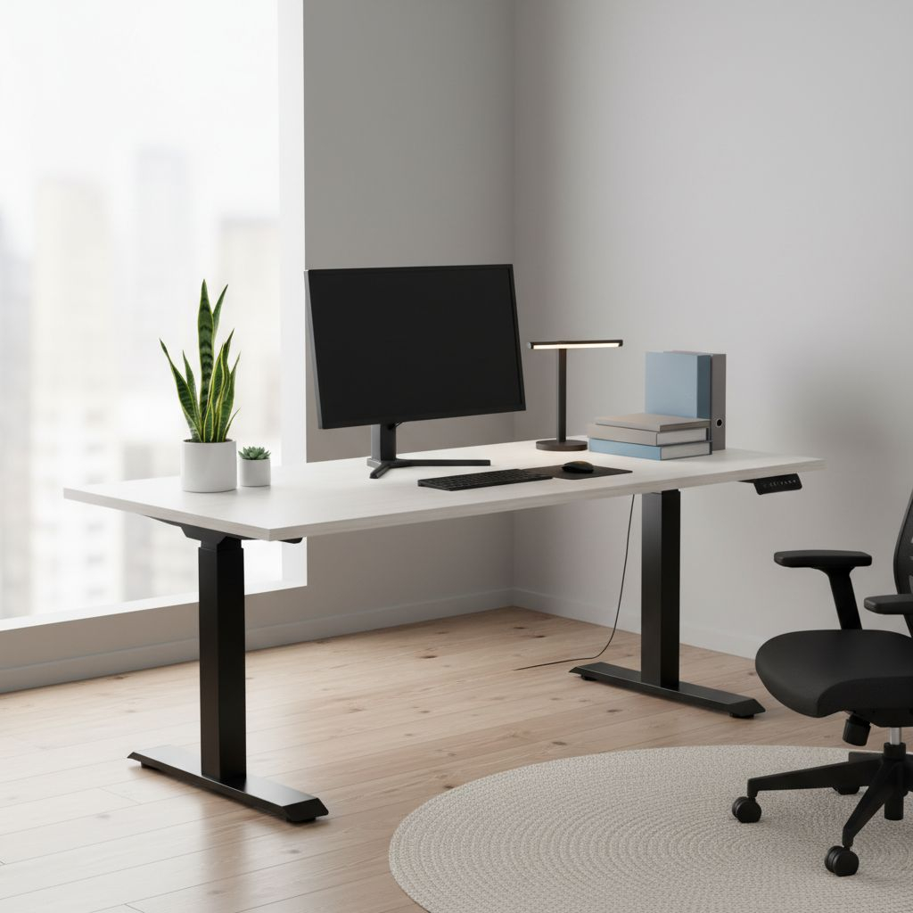 Když stůl při sjíždění do nižší polohy narazí na odpor (např. područku zasunuté židle), zastaví se. Nemusíte se tak bát poškození nábytku nebo spadnutí věcí ze stolu.