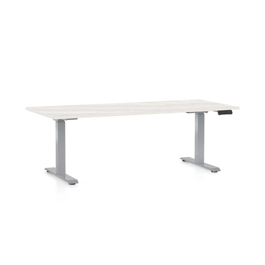 Výškově nastavitelný stůl OfficeTech D, 180 x 80 cm, šedá podnož, bílý jasan