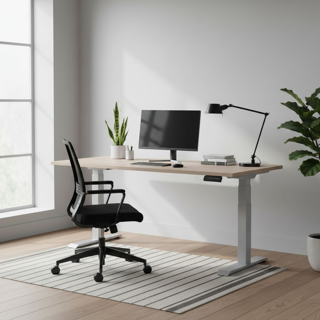 Když stůl při sjíždění do nižší polohy narazí na odpor (např. područku zasunuté židle), zastaví se. Nemusíte se tak bát poškození nábytku nebo spadnutí věcí ze stolu.