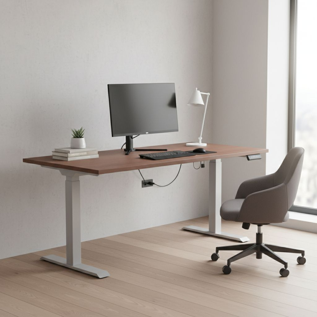 Desky těchto stolů jsou z laminované dřevotřísky s ochrannou ABS hranou. Kovové podnože mají variabilní délku a šířku bezmála 70 cm, což jim zaručí skvělou stabilitu. Napájení řeší kabel do klasické 230V zásuvky.