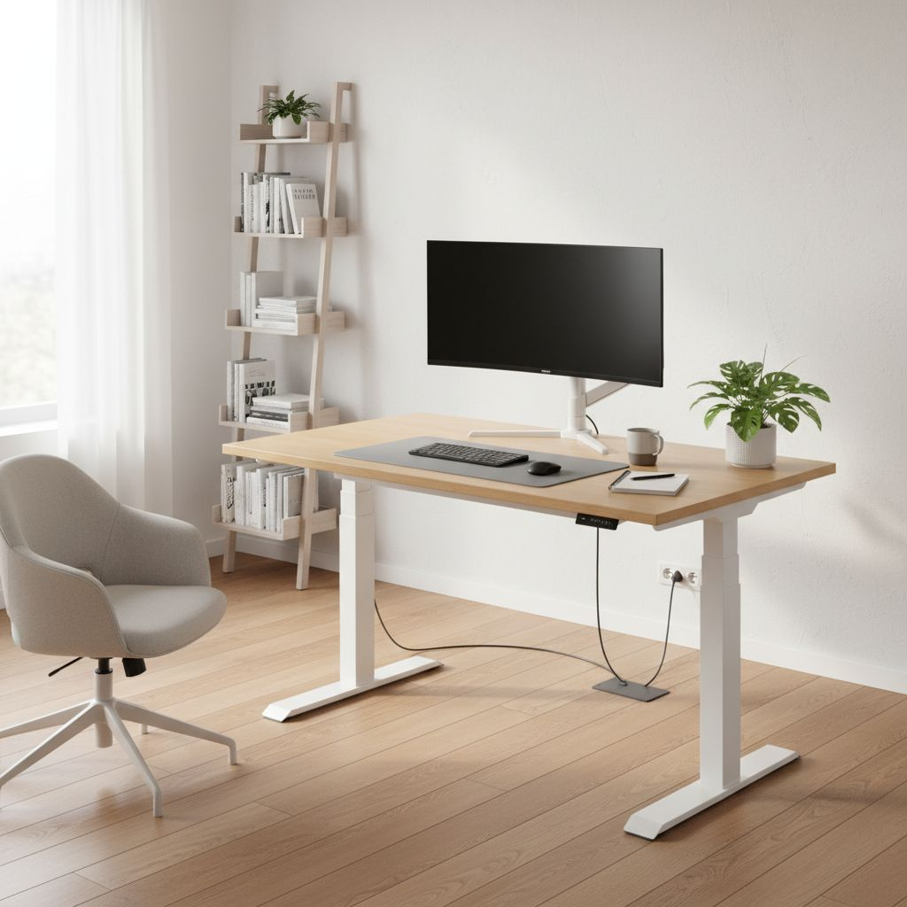 Když stůl při sjíždění do nižší polohy narazí na odpor (např. područku zasunuté židle), zastaví se. Nemusíte se tak bát poškození nábytku nebo spadnutí věcí ze stolu.