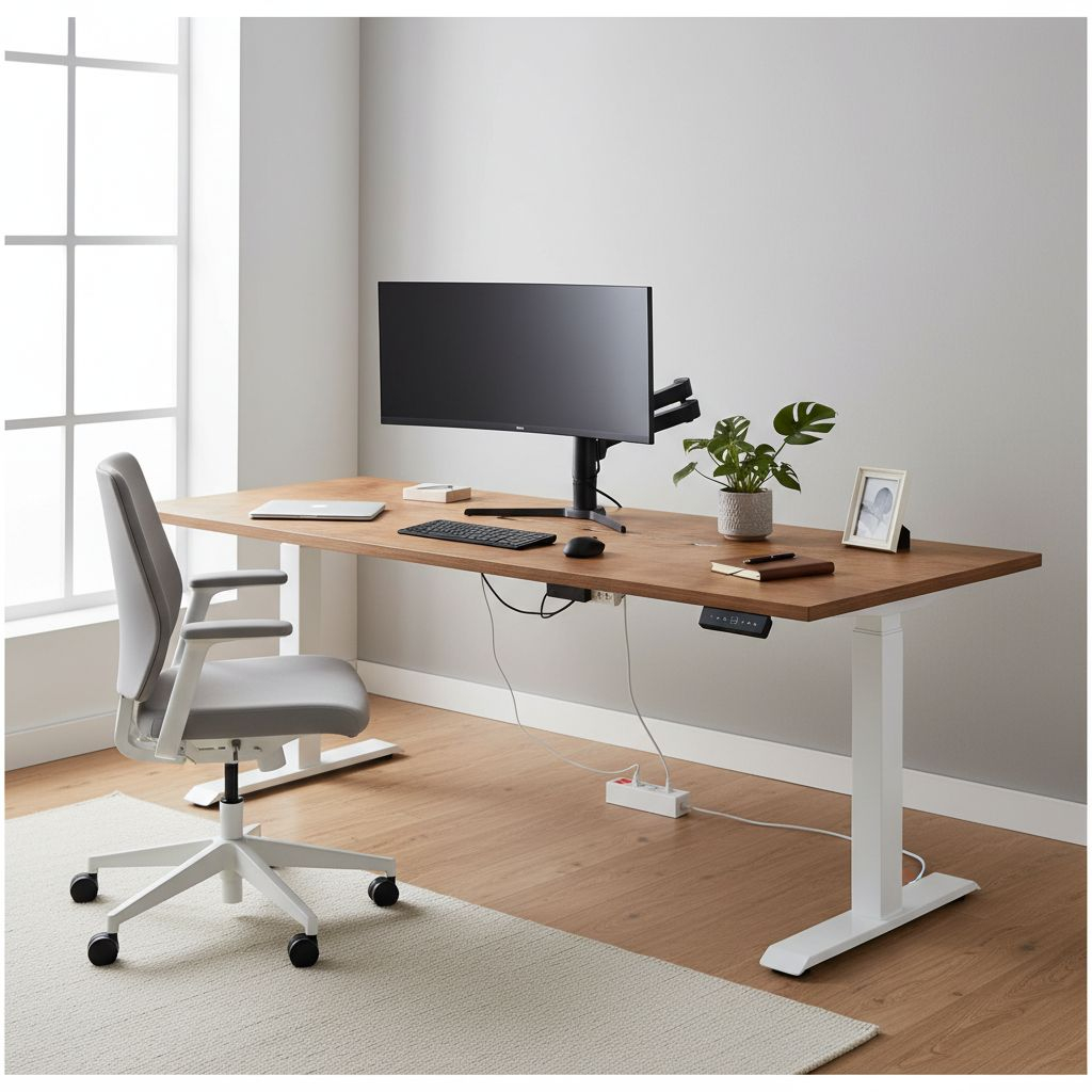 Když stůl při sjíždění do nižší polohy narazí na odpor (např. područku zasunuté židle), zastaví se. Nemusíte se tak bát poškození nábytku nebo spadnutí věcí ze stolu.