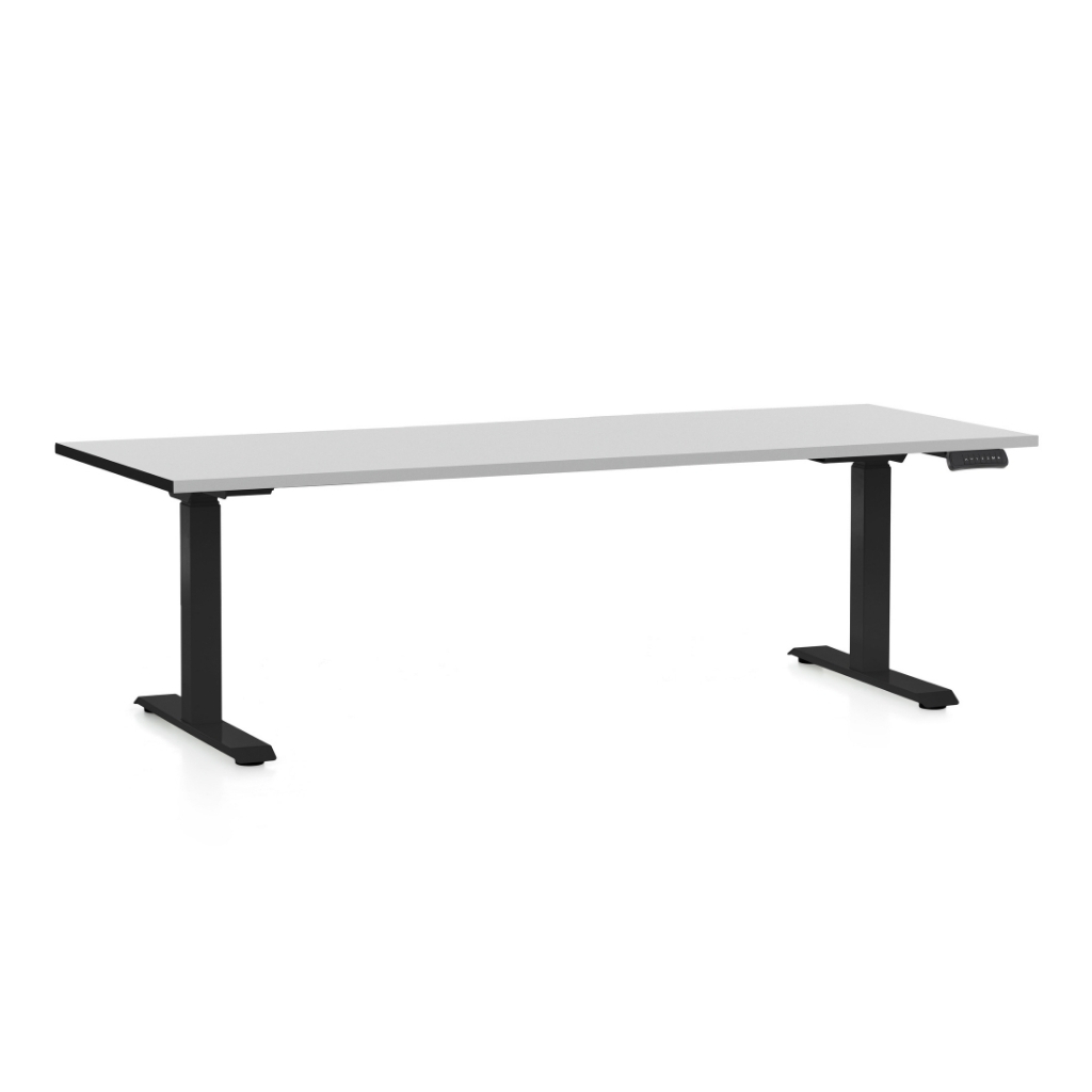 Desky těchto stolů jsou z laminované dřevotřísky s ochrannou ABS hranou. Kovové podnože mají variabilní délku a šířku bezmála 70 cm, což jim zaručí skvělou stabilitu. Napájení řeší kabel do klasické 230V zásuvky.