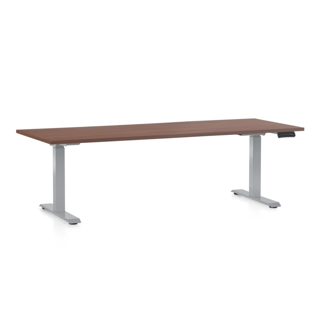 Desky těchto stolů jsou z laminované dřevotřísky s ochrannou ABS hranou. Kovové podnože mají variabilní délku a šířku bezmála 70 cm, což jim zaručí skvělou stabilitu. Napájení řeší kabel do klasické 230V zásuvky.