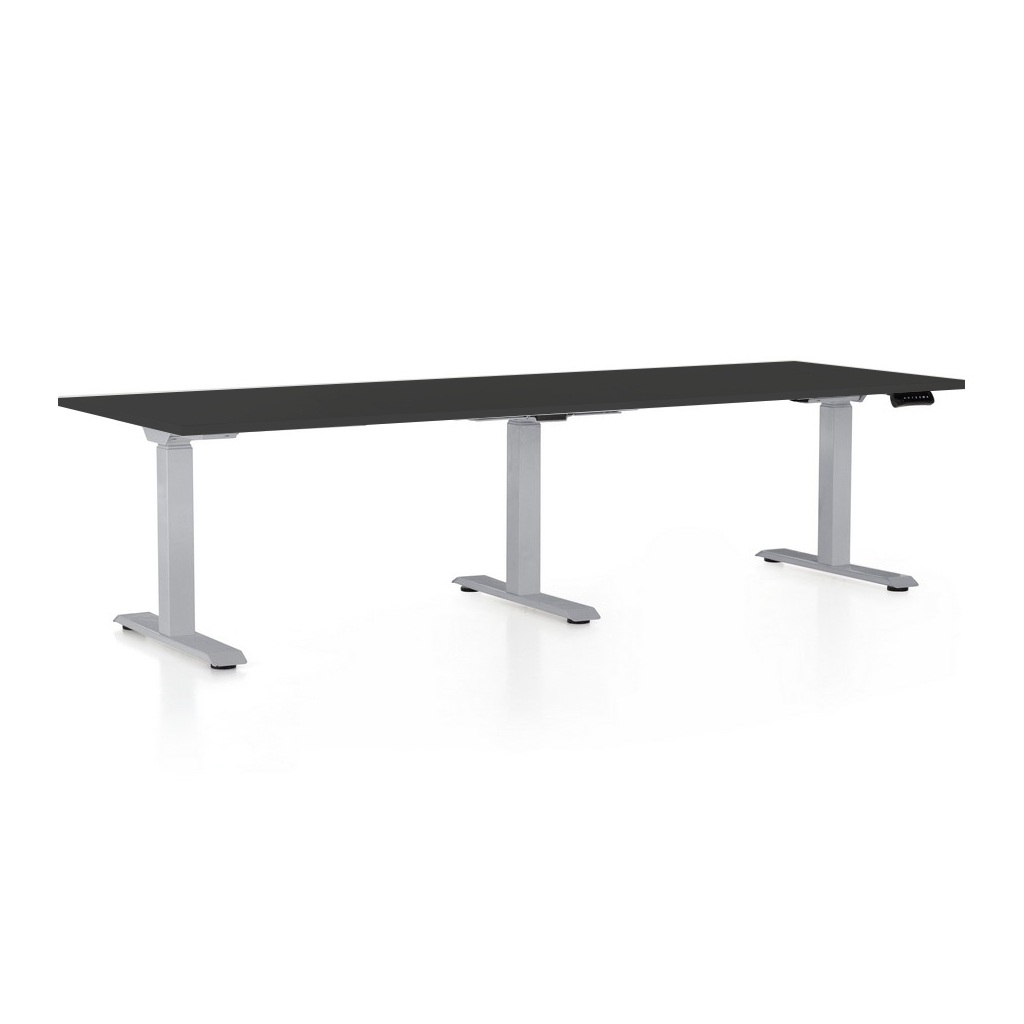 Výškově nastavitelný stůl OfficeTech Long, 240 x 80 cm, šedá podnož, černá