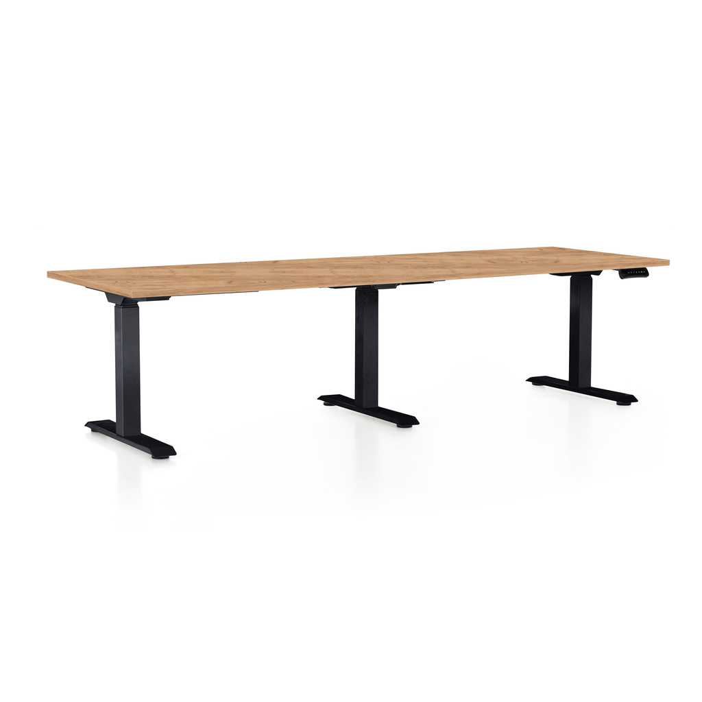 Výškově nastavitelný stůl OfficeTech Long, 240 x 80 cm, černá podnož, dub kraft