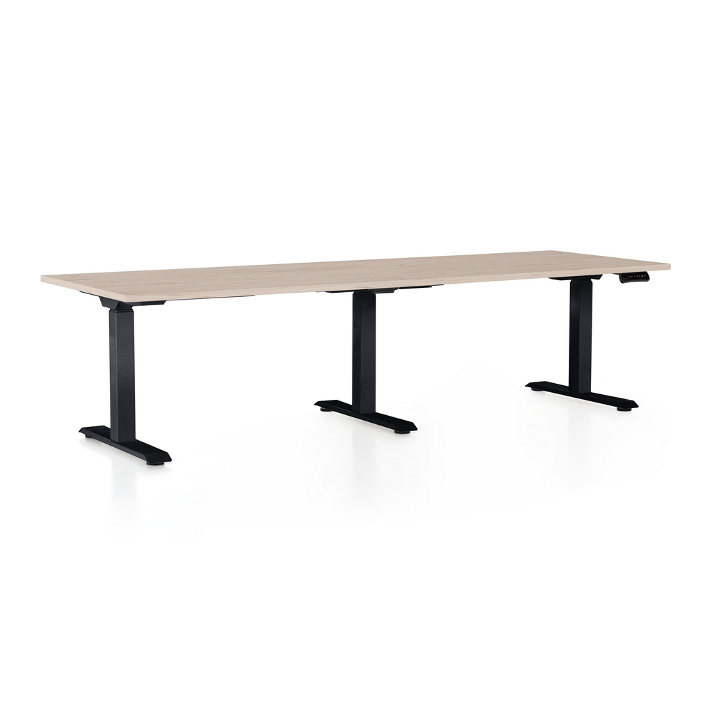 Výškově nastavitelný stůl OfficeTech Long, 240 x 80 cm, černá podnož, dub