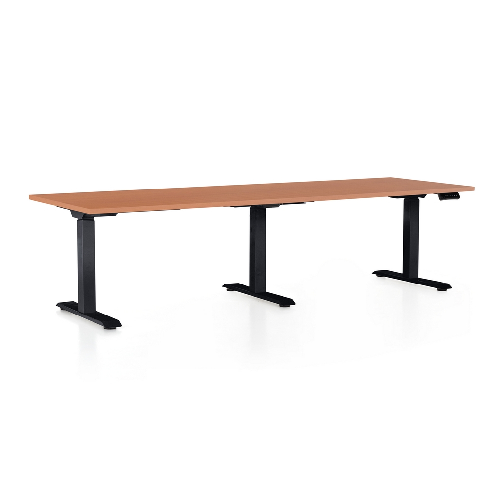 Výškově nastavitelný stůl OfficeTech Long, 240 x 80 cm, černá podnož, třešeň