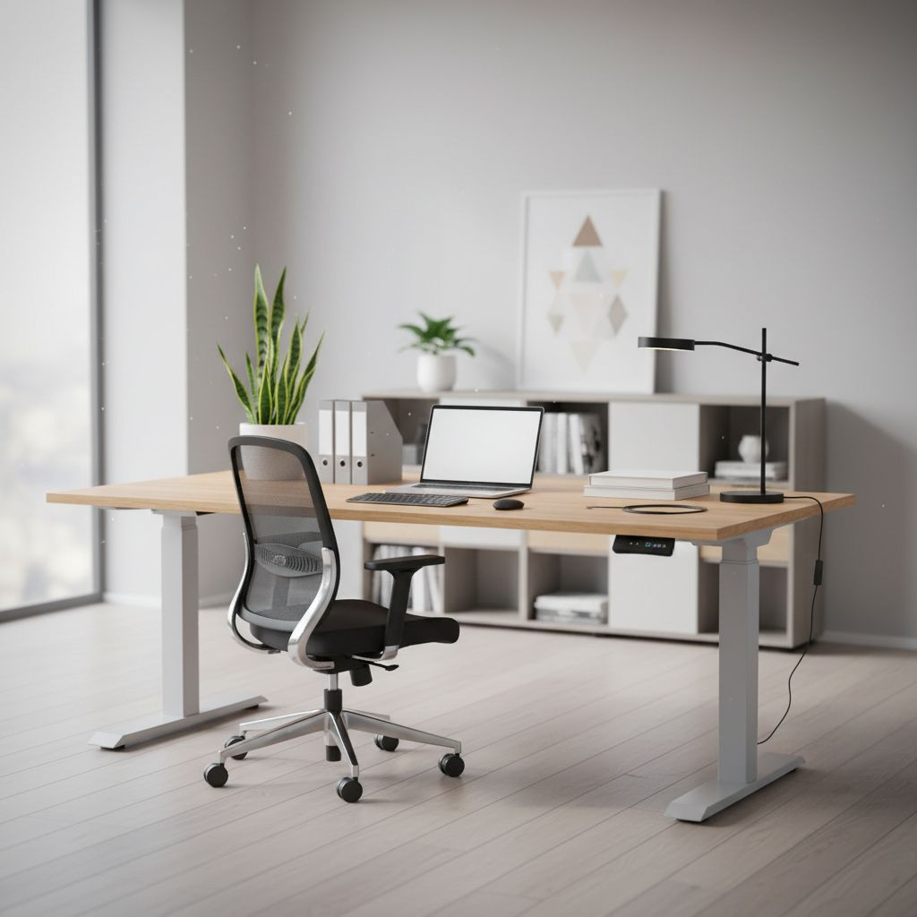 Když stůl při sjíždění do nižší polohy narazí na odpor (např. područku zasunuté židle), zastaví se. Nemusíte se tak bát poškození nábytku nebo spadnutí věcí ze stolu.