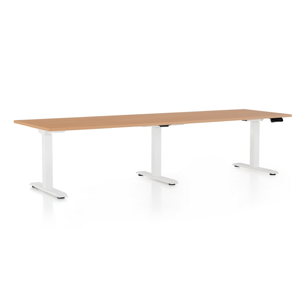 Výškově nastavitelný stůl OfficeTech Long, 260 x 80 cm, bílá podnož, buk