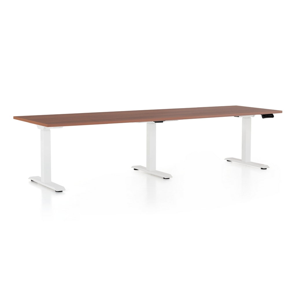 Výškově nastavitelný stůl OfficeTech Long, 260 x 80 cm, bílá podnož, ořech