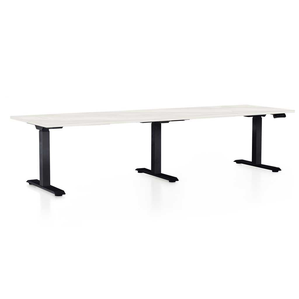 Výškově nastavitelný stůl OfficeTech Long, 260 x 80 cm, černá podnož, bílý jasan
