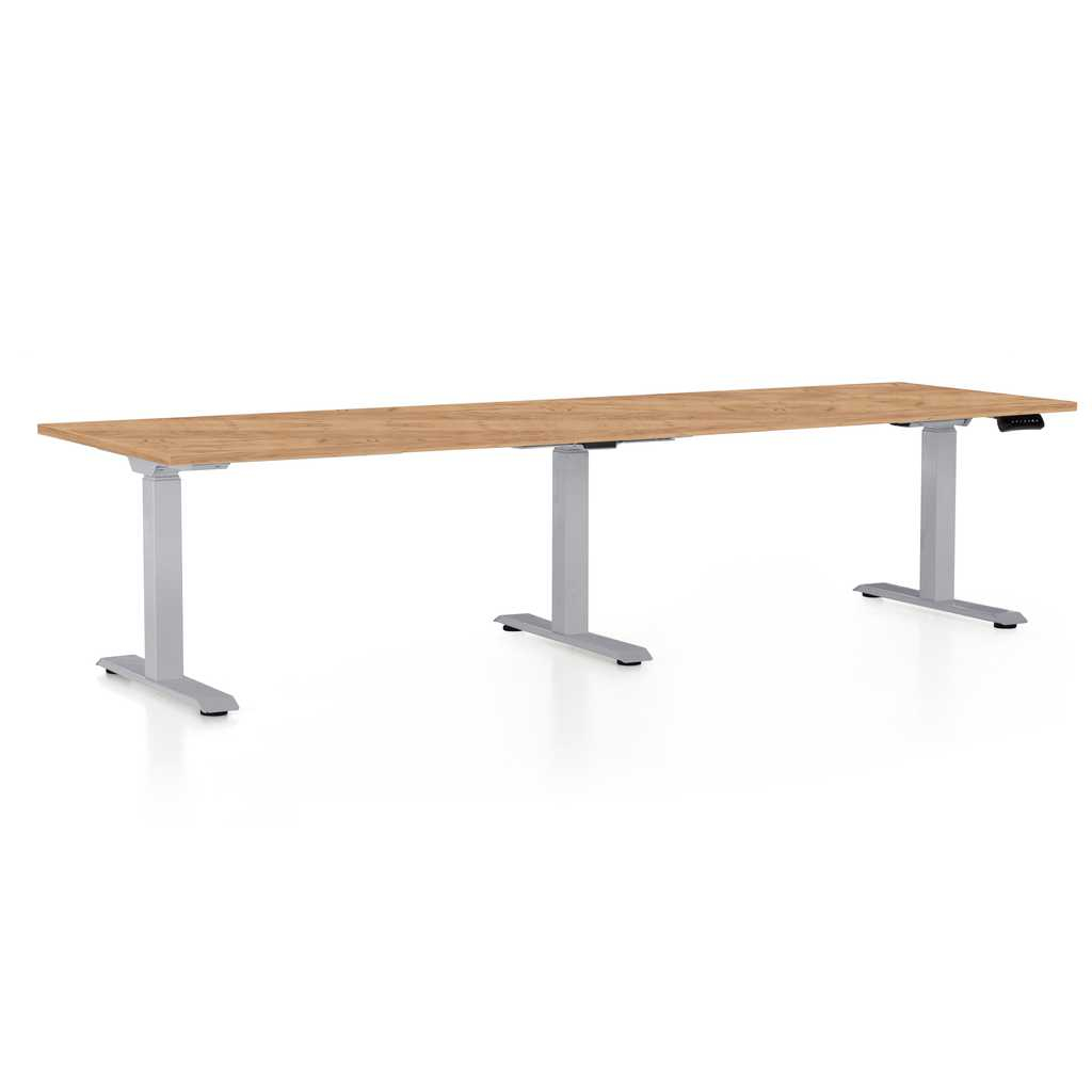 Výškově nastavitelný stůl OfficeTech Long, 260 x 80 cm, šedá podnož, dub kraft