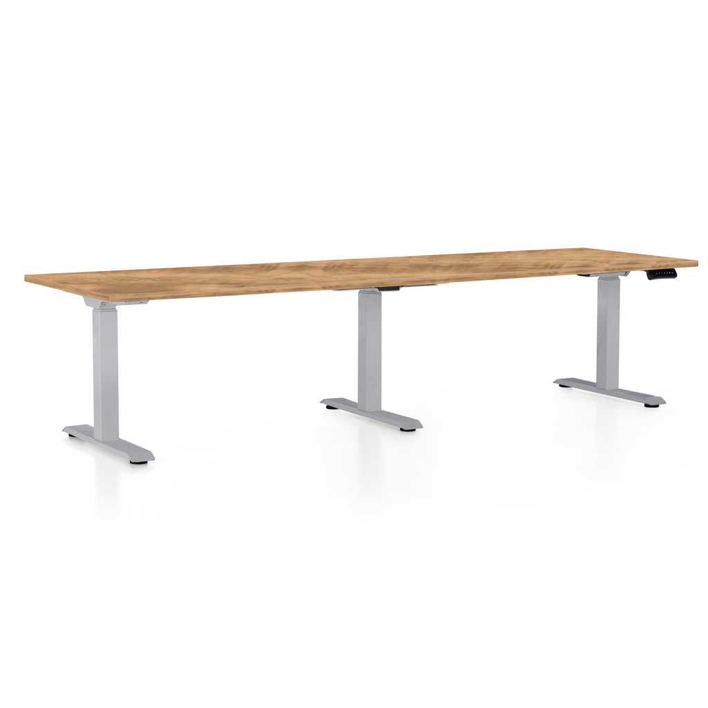 Výškově nastavitelný stůl OfficeTech Long, 260 x 80 cm, šedá podnož, dub zlatý