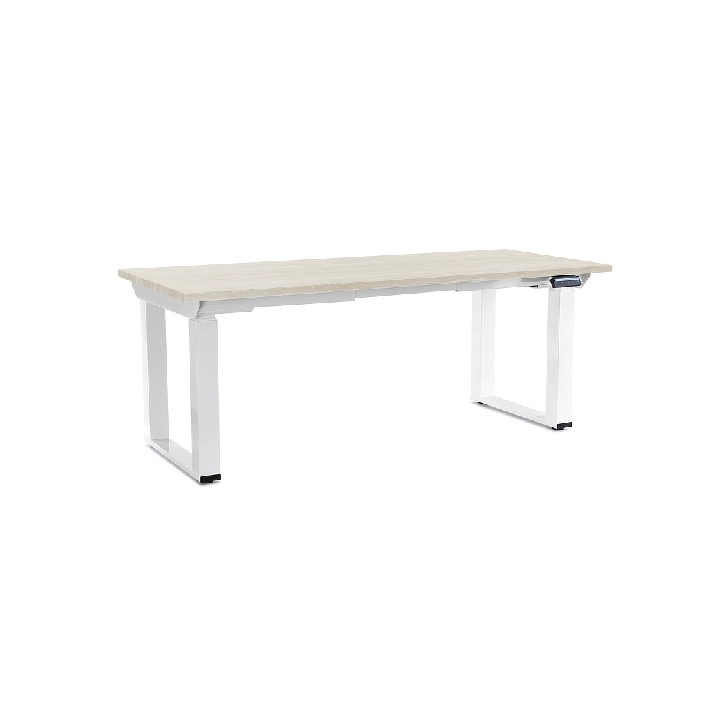 Výškově nastavitelný stůl OfficeTech Strong 180 x 80 cm, bílá podnož, bílý jasan