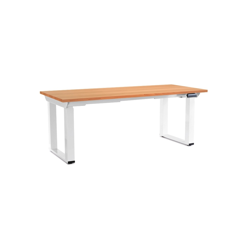 Výškově nastavitelný stůl OfficeTech Strong 180 x 80 cm, bílá podnož, buk