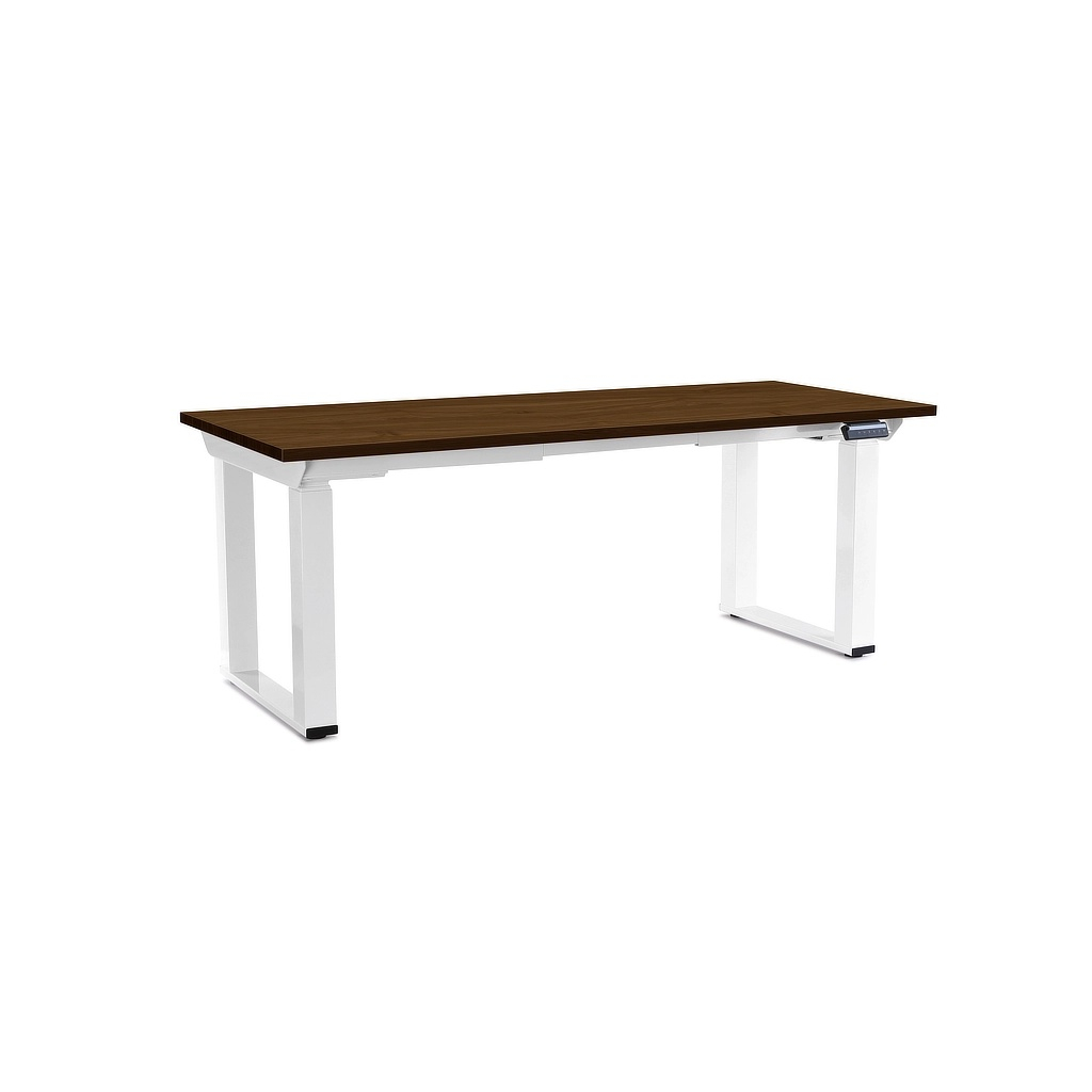 Výškově nastavitelný stůl OfficeTech Strong 180 x 80 cm, bílá podnož, ořech