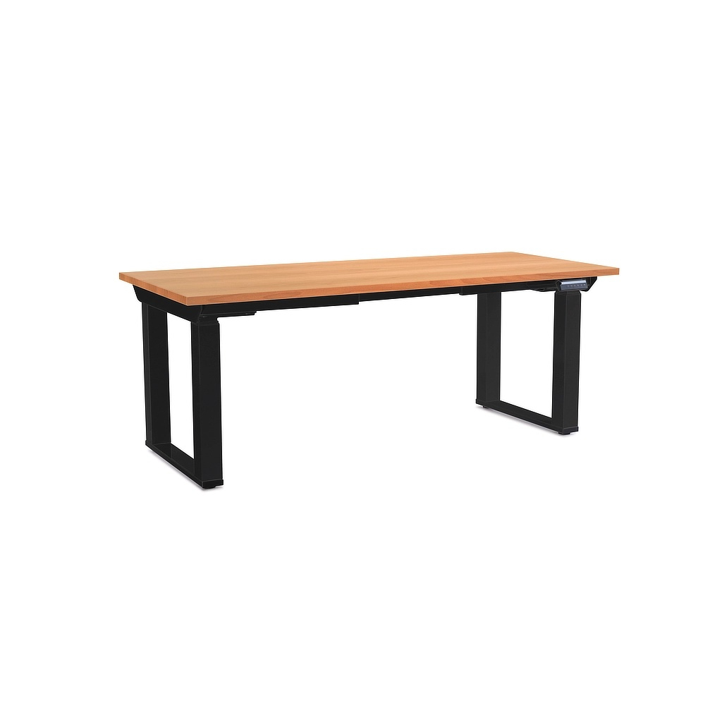 Výškově nastavitelný stůl OfficeTech Strong 180 x 80 cm, černá podnož, buk