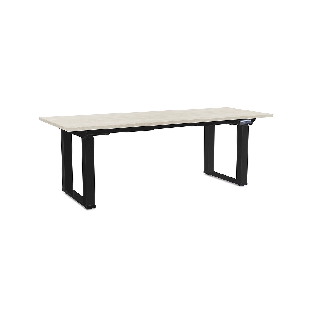 Výškově nastavitelný stůl OfficeTech Strong 200 x 80 cm, černá podnož, bílý jasan