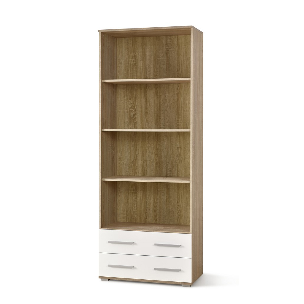 Vysoká policová skříň Lima, bílá / dub sonoma