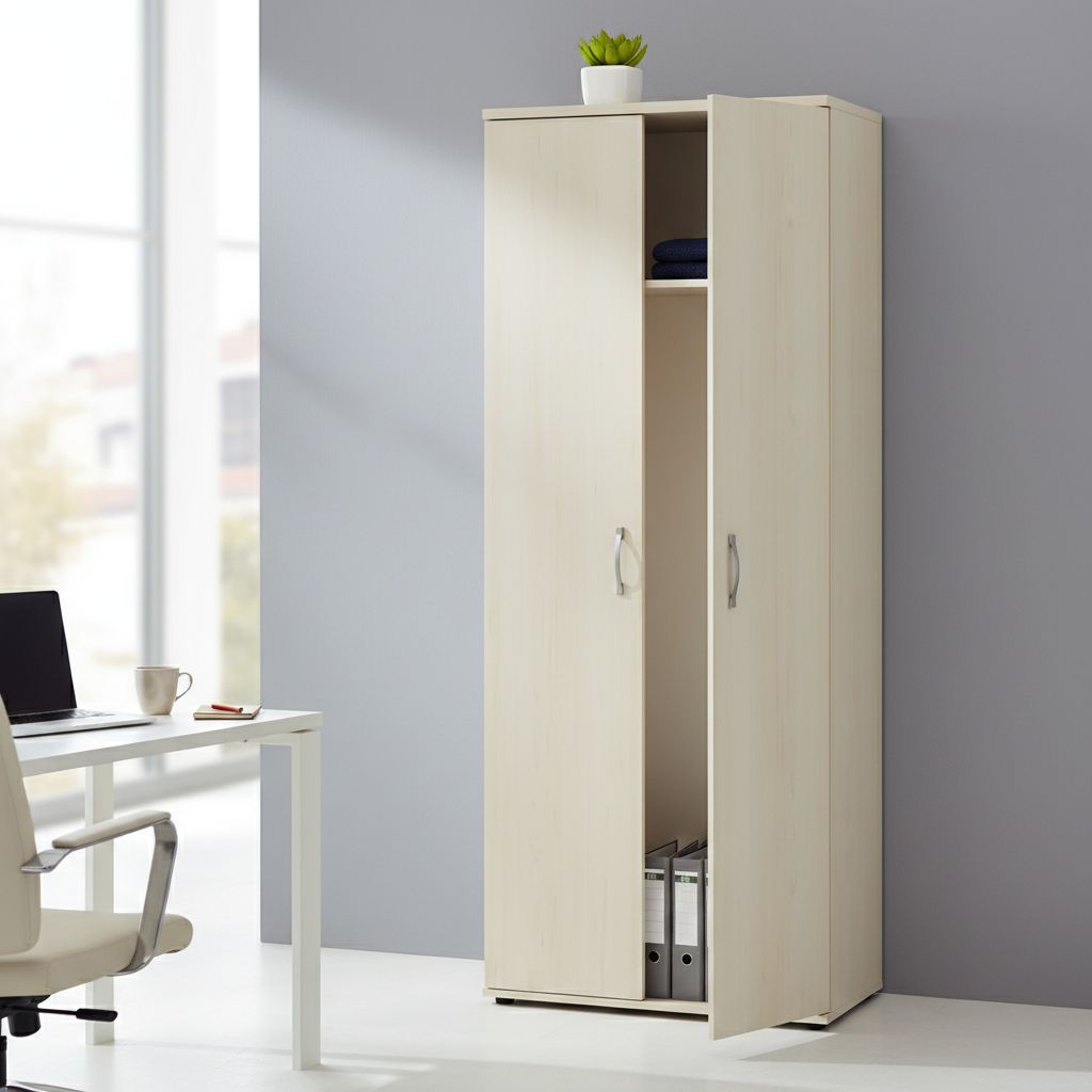 Hodí se jak do uzavřených, tak i do open space pracoven. Uvnitř skříně je kovový výsuvný věšák pro pověšení ramínek. Své kabáty a saka do ní snadno schováte a nebudete je mít v kanceláři neustále na očích.