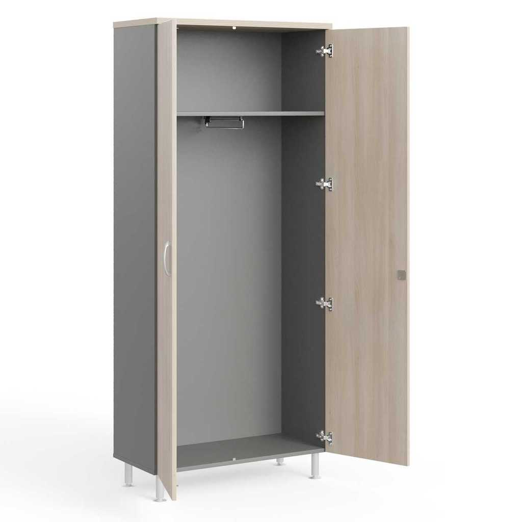 Uvnitř skříně je kovový výsuvný věšák pro pověšení ramínek. Své kabáty a saka do ní snadno schováte a nebudete je mít v kanceláři neustále na očích.