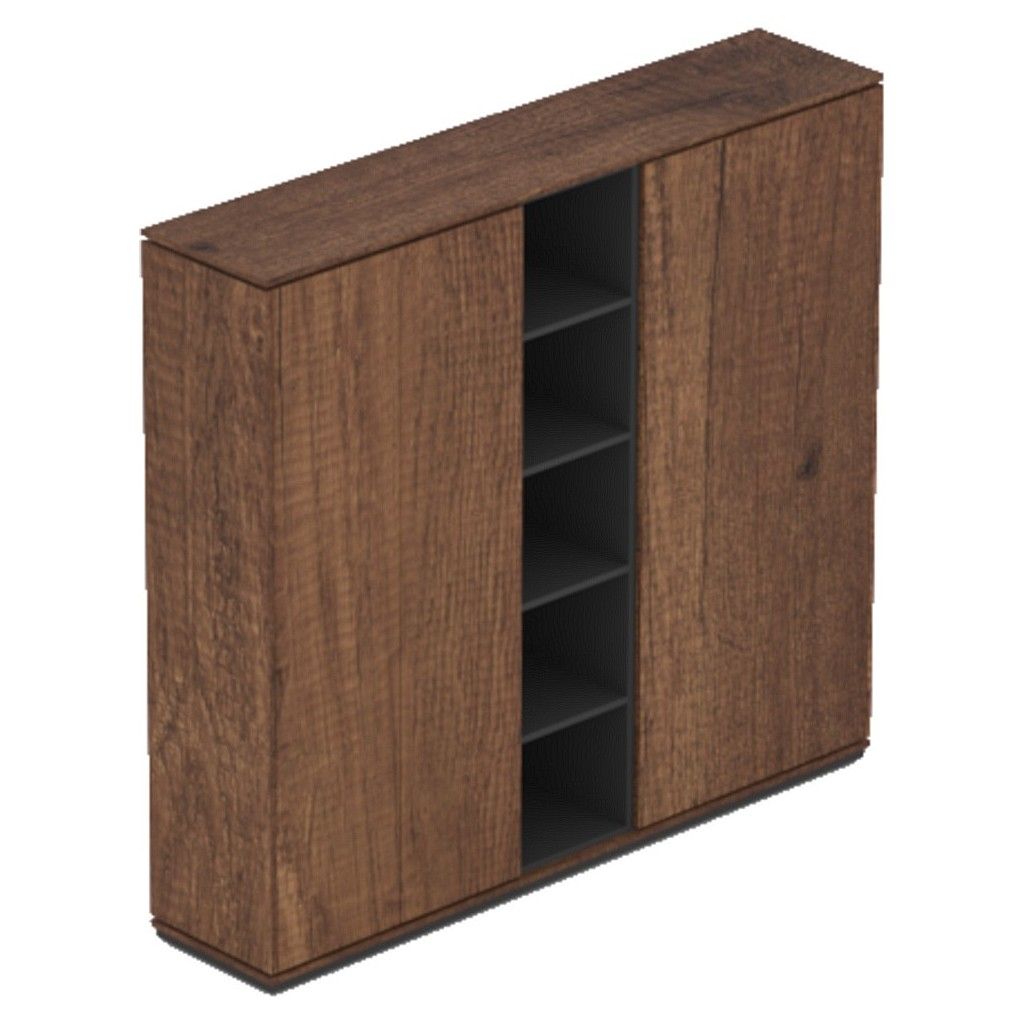 Tento typ skříně obsahuje 5 policových oddílů. 4 z nich mají křídlové dveře, ten prostřední je pak otevřený – ideální místo k vystavení dekorativních předmětů, zajímavých ocenění a čehokoli dalšího, co stojí za to mít na očích.