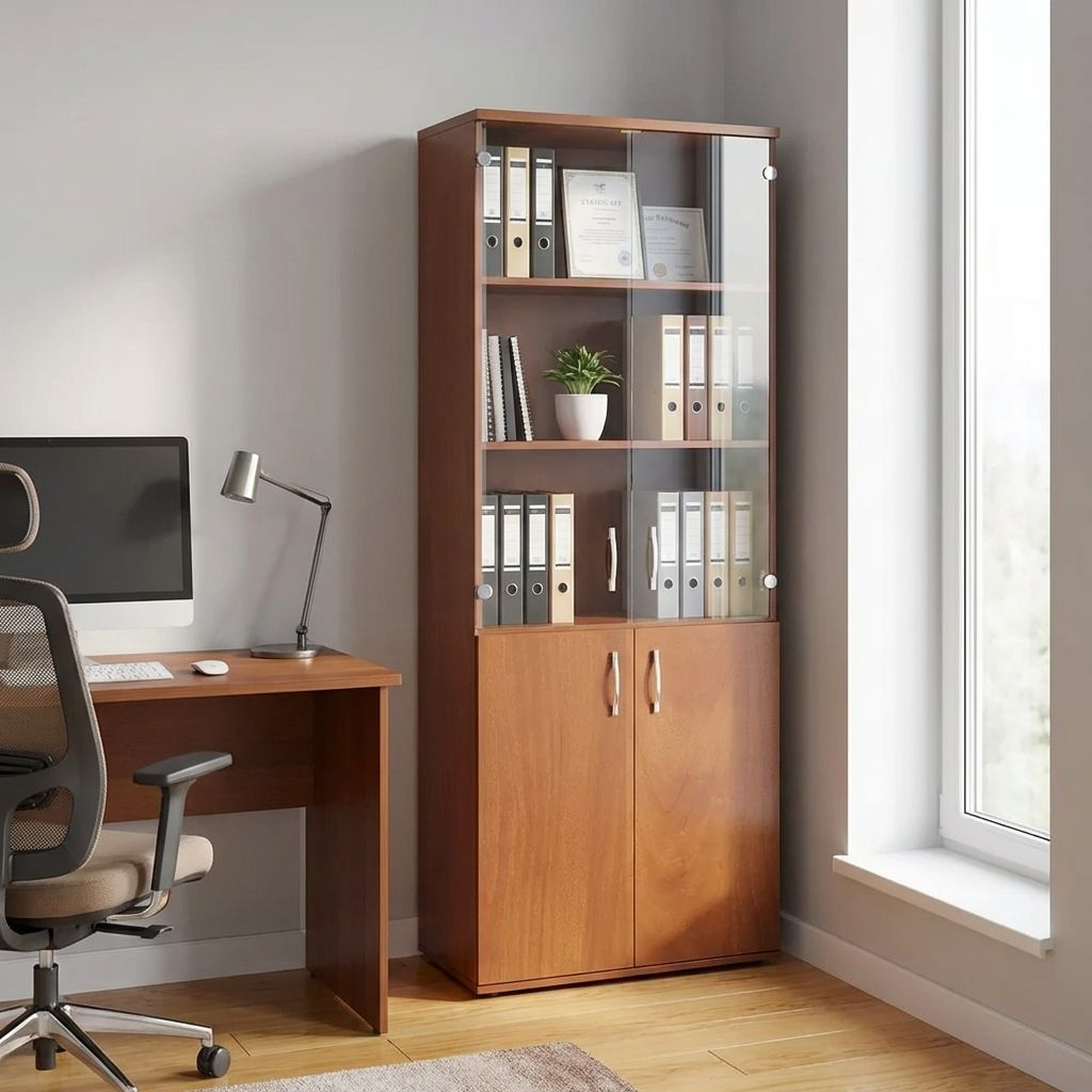 Vysokou skříň Impress s rozměry 74 x 37 x 190 cm doporučujeme zejména pro administrativní kanceláře a kanceláře zaměstnanců. Jedná se o cenově nejvýhodnější nábytkovou řadu.