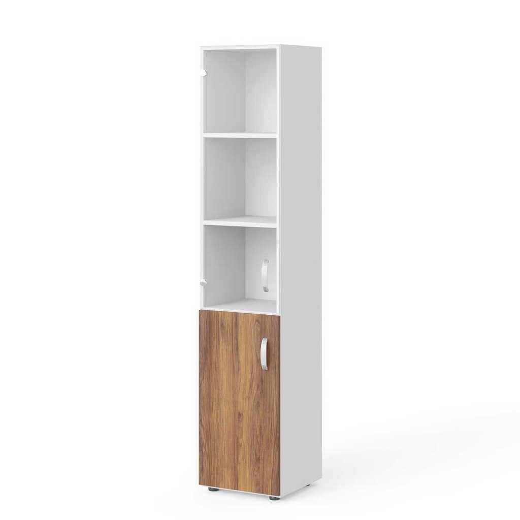 Skříň je dodávána společně se spodními dřevěnými dveřmi i skleněnými dveřmi, které jsou určeny pro horní část. Dveře jsou vybaveny plastovými úchytkami. Pro sjednocení elegantního vzhledu vaší kanceláře si můžete objednat obkladovou desku.