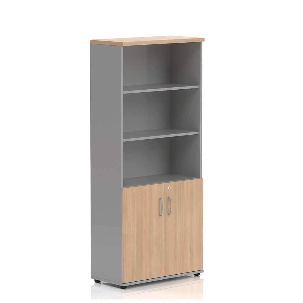 Skříně Visio LUX nabízíme ve dvou dezénech, které vám zaručí jednotný vzhled vaší kanceláře. Boky a záda skříně jsou v elegantní šedé barvě.