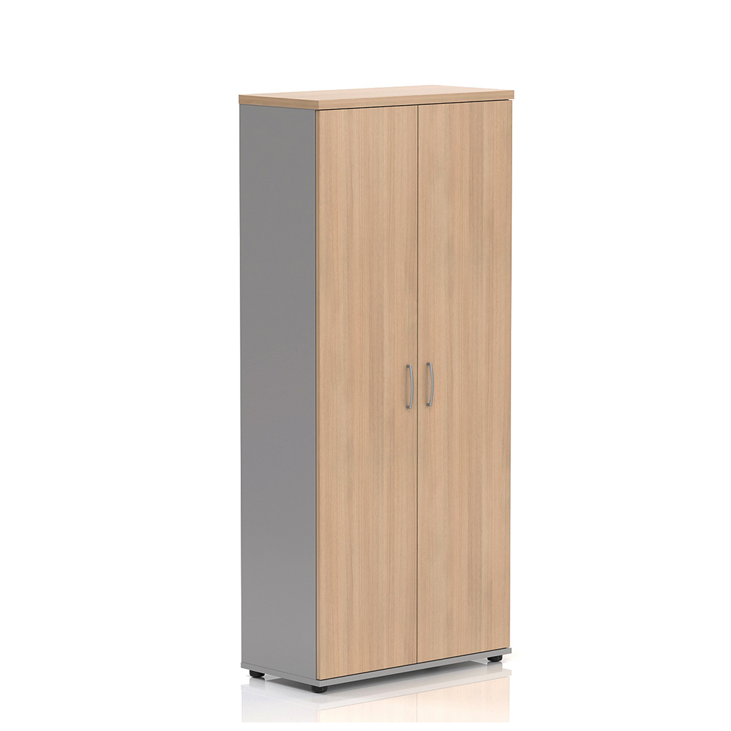 Skříně Visio LUX nabízíme ve dvou dezénech, které vám zaručí jednotný vzhled vaší kanceláře. Boky a záda skříně jsou v elegantní šedé barvě.