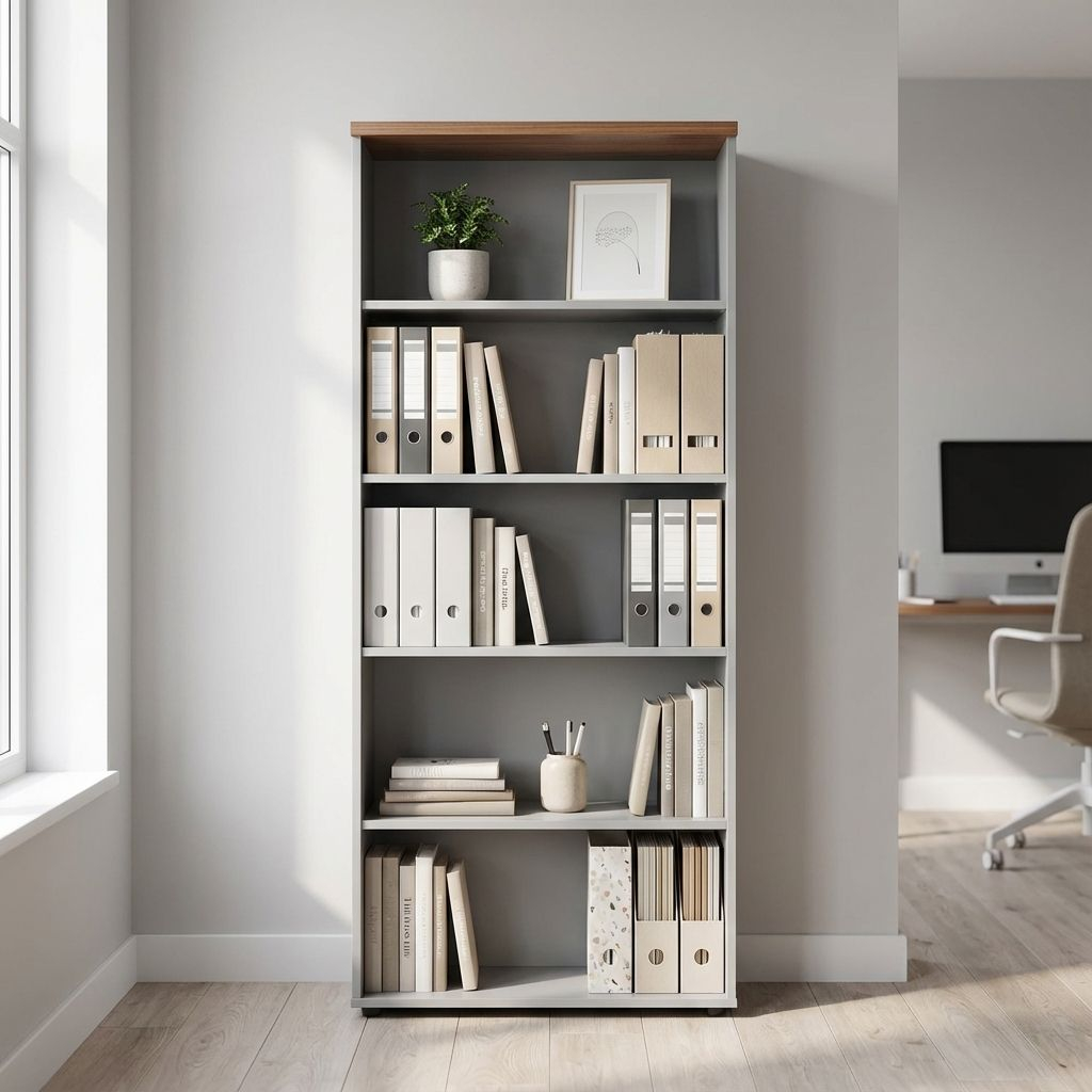 Skříně Visio LUX nabízíme ve dvou dezénech, které vám zaručí jednotný vzhled vaší kanceláře. Boky a záda skříně jsou v elegantní šedé barvě.