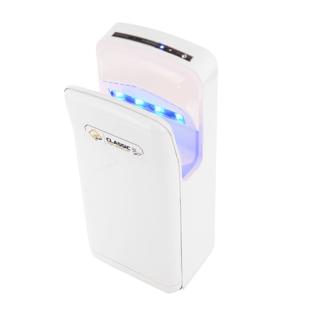 Jet Dryer CLASSIC je dostatečně odolný proti mechanickému poškození. Konstrukce je vyrobena z ABS plastu a dodáváme ji ve dvou barevných provedeních. V bílé a ve stříbrné.