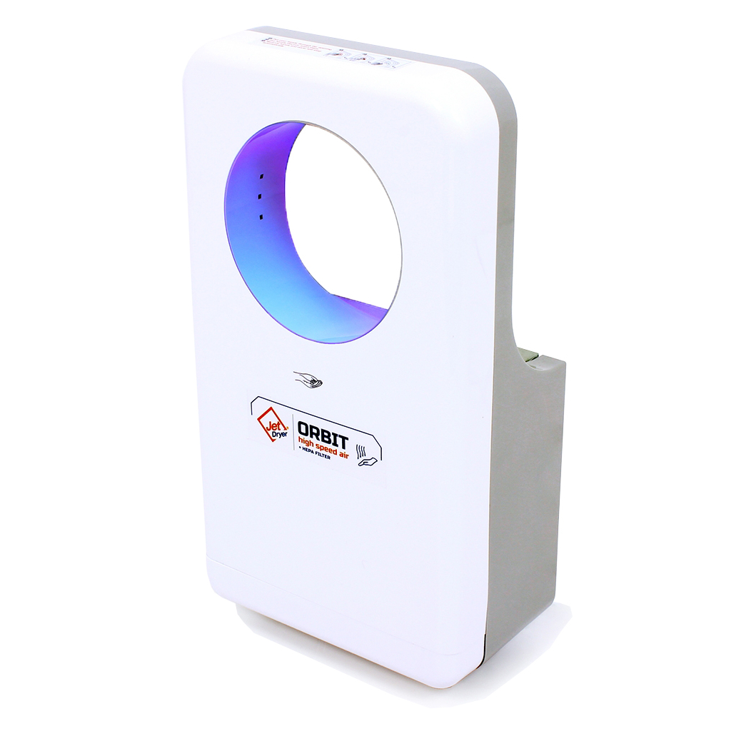 Tryskový vysoušeč rukou Jet Dryer ORBIT je ekonomicky výhodným řešením pro toalety s vysokou návštěvností. Produkty ze série Jet Dryer patří k nejlevnějším způsobům osušení rukou. Již při 200 použití během jednoho dne ušetříte oproti papírovým utěrkám asi 1290 Kč měsíčně. Vysoušeč je navíc i velmi rychlý. Ruce vám pomocí vzduchových trysek vysuší za pouhých 7 sekund a zabrání tak vzniku front na toaletách.