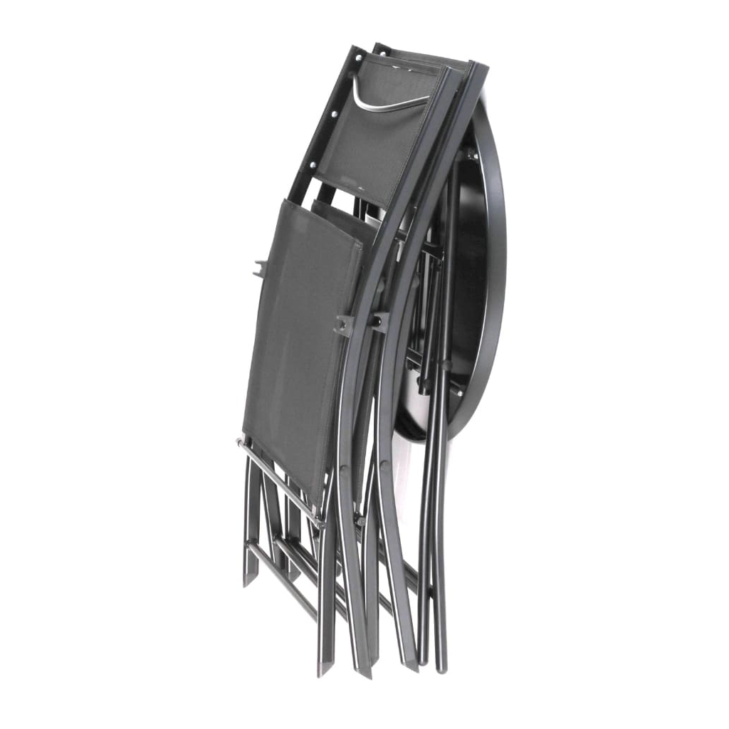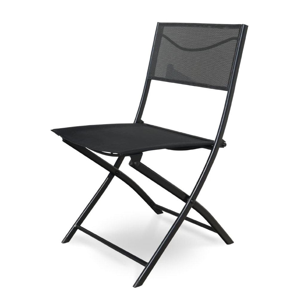 Ke stolu patří také 2 jednoduché židle. I jejich kostra je kovová, kontaktní plochy jsou pak ze syntetické síťoviny, kterou nerozhodí žádné vrtochy počasí.