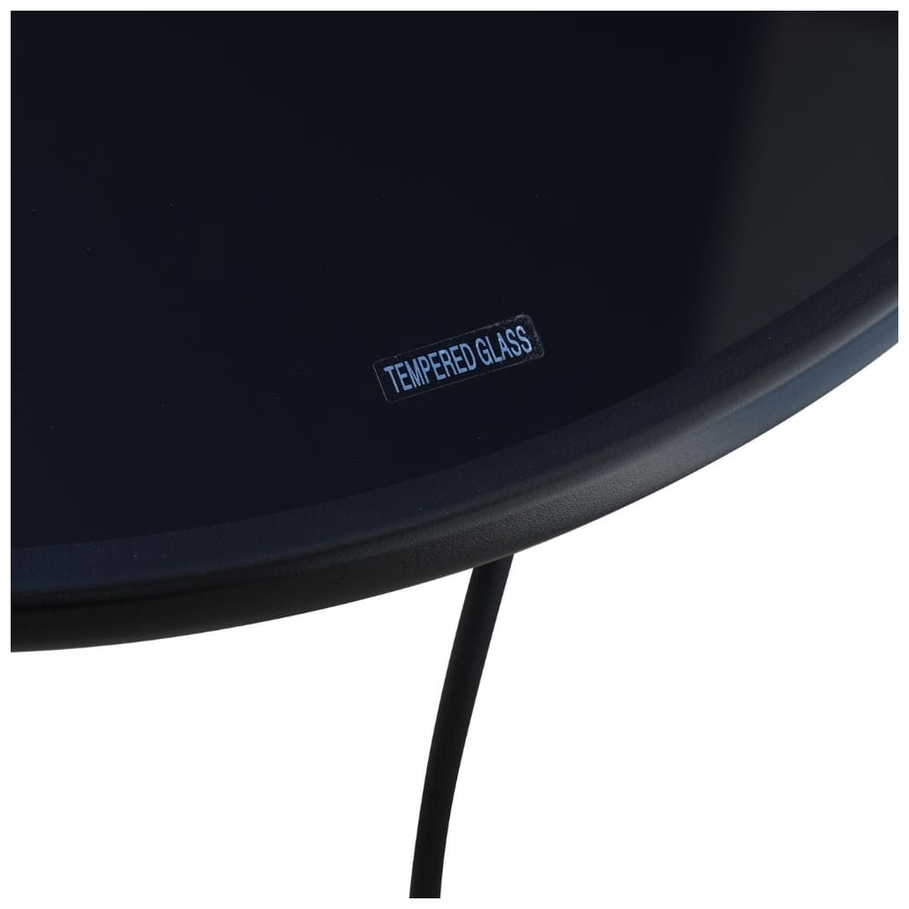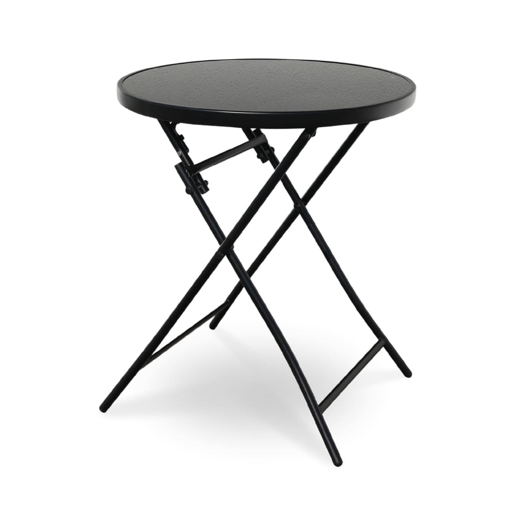 Stolek má průměr 60 cm a výšku 70 cm. Deska je z elegantního tvrzeného skla, zbytek konstrukce pak z odolných kovových trubek.